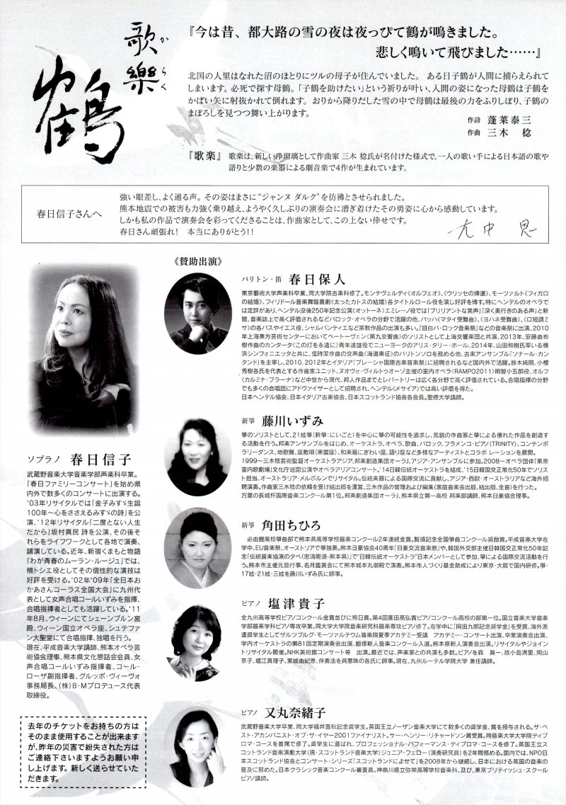 作品名 春日信子ソプラノリサイタル歌楽「鶴」および「大中恩のせかい ひとりぼっちがたまらなかったら」